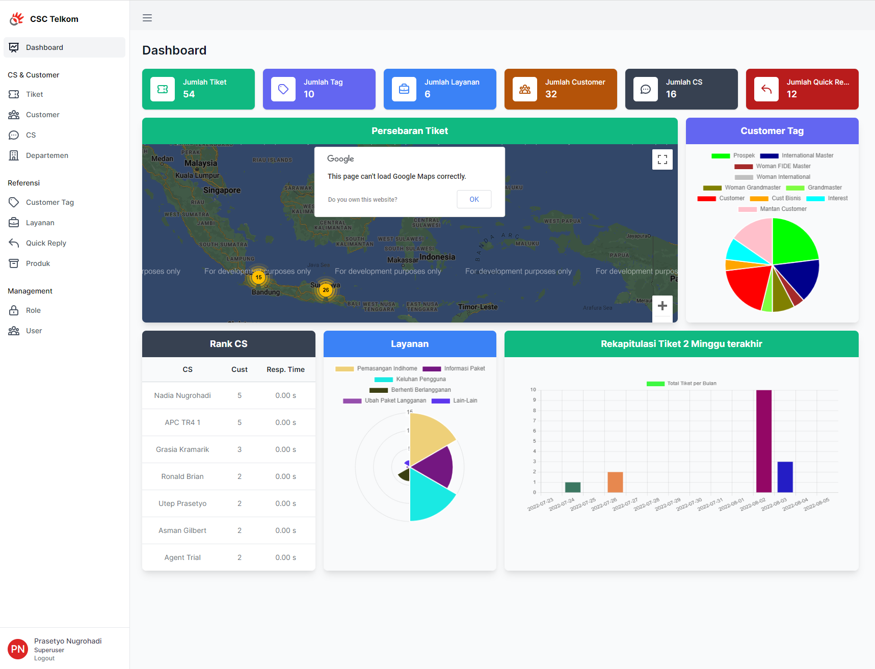 Terdapat juga website admin untuk memonitor seluruh kegiatan CS yang dapat dimanfaatkan juga sebagai alat reporting kepada Executive